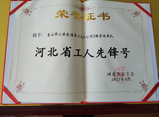 2023年428日,河北省總工會授予唐山公交總公司46路駕駛員翟澤明河北省五一勞動獎章,授予唐山公交總公司2路營運車隊河北省工人先鋒號。